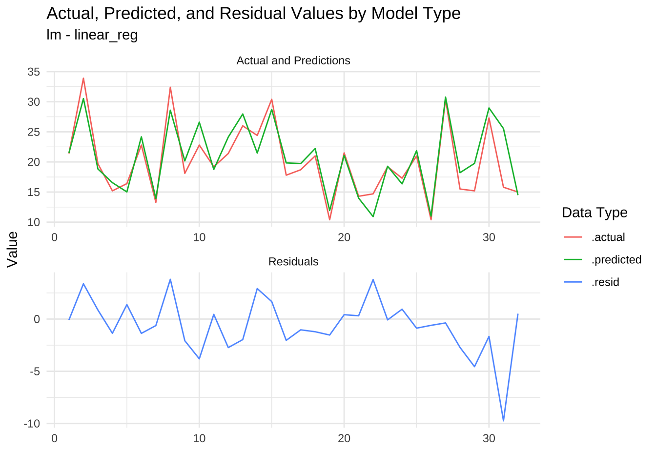 Mit der Funktion extract_regression_residuals() lassen sich die Residuen der angepassten Modelle zusammen mit den ursprünglichen und den vorhergesagten Daten extrahieren.