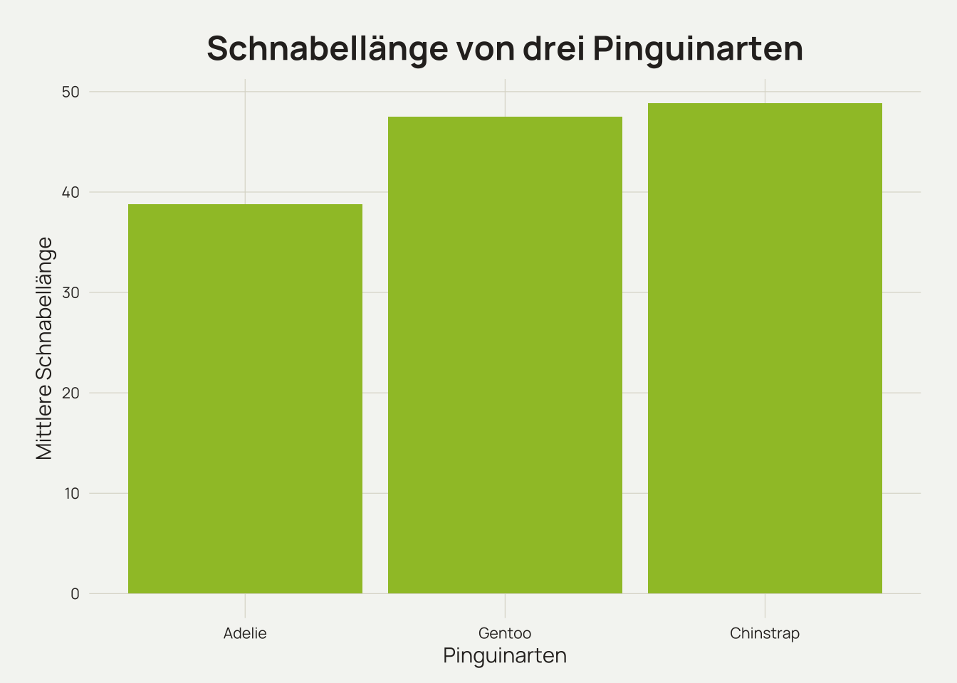 e_title(text = "Schnabellänge von drei Pinguinarten",